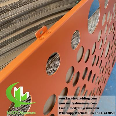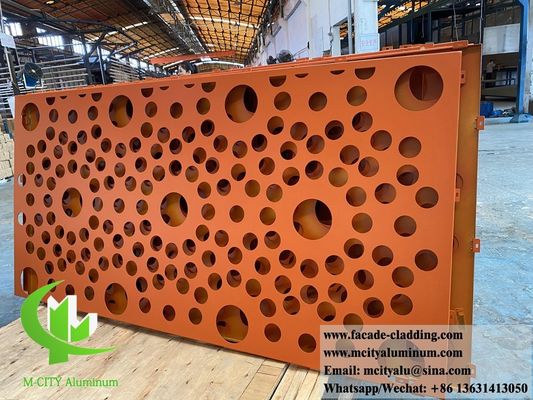 Внешний металлический экран с перфорацией круглые отверстия узоры порошкообразного покрытия оранжевого цвета