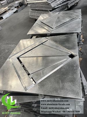 Металлическая облицовочная панель изготовлена из высококачественного высокопрочного алюминиевого сплава, и ее обычно используемая толщина составляет 1,5 мм, 2,0 мм, 2,5 мм, 3,0 мм. Максимальная ширина листа составляет в пределах 2000 мм,Максимальная длина не превышает 6000 мм, а серия алюминиевого сплава - 3003-H14 или 1100-H14. Она состоит из панели, усилительной стойки и скобки. Угловой скоб может быть непосредственно отпечатан с панели, согнут и сформирован,или угловой кронштейн может быть закована на маленьких складывающихся краях панелиУкрепляющие стержни соединены со сварочными винтами за поверхностью доски, что делает ее твердым целым, что значительно повышает прочность и жесткость плотной алюминиевой облицовочной панели,и обеспечивает плоскость и устойчивость к давлению ветра и землетрясениям алюминиевой облицовки при длительном использованииЕсли требуется звукоизоляция, высокоэффективные звукоизоляционные материалы могут быть установлены внутри алюминиевой панели.